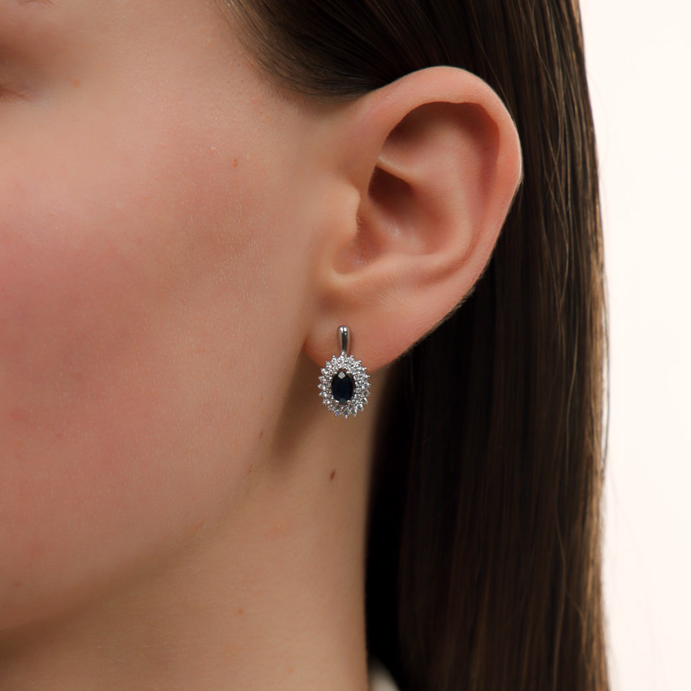 Очень изящные серёжки с натуральным сапфиром. Выглядят, как белое золото, сразу и не отличить. Они прекрасны!