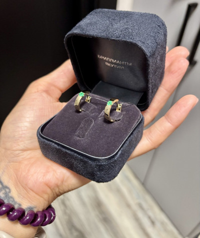 Выбирала маме подарок, решила приобрести серьги и кольцо. Очень нравятся изумруды, да и у мамы их нет)) выбрала натуральный камень, не искусственный. Серьги очень тяжелые, это ощущается, когда держишь коробочку, почти 4г, хоть и малютки)) очень красиво сверкают камни, качественное исполнение, замок сам по себе не откроется! Серьги лаконичные, классические, смотрятся солидно. Купила . Паспорт ювелирного украшения прилагается. Заказывала через приложение, упаковали отлично!