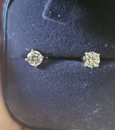 А еще лучше желтые бриллианты!давно хотела эти пусеты,дождалась скидки и сразу попросила мужа сделать мне этот подарок!Они прекрасны,лаконичны,ничего лишнего только сверкающий в каждом ухе бриллиантик,как будто через него проходят солнечные лучики!