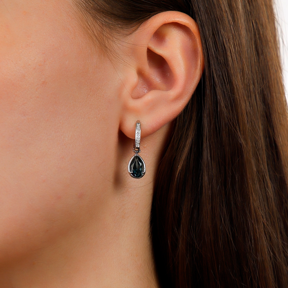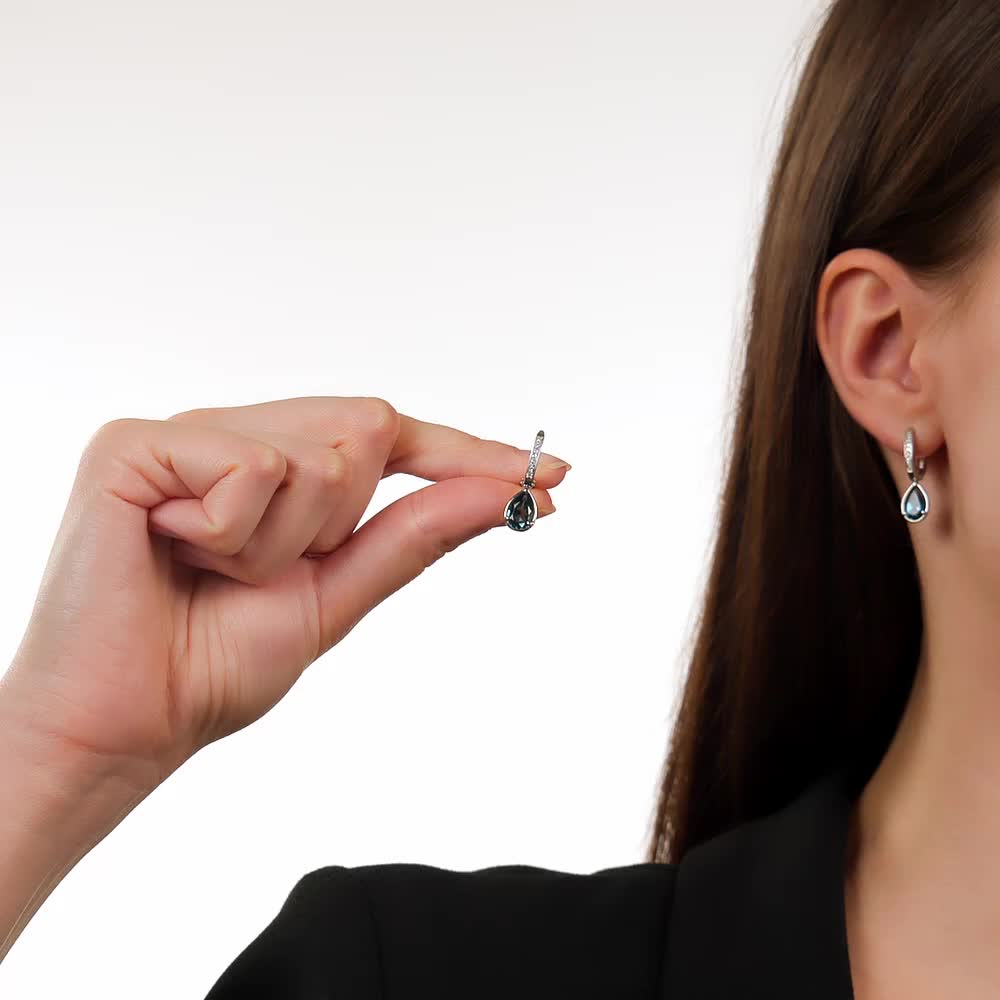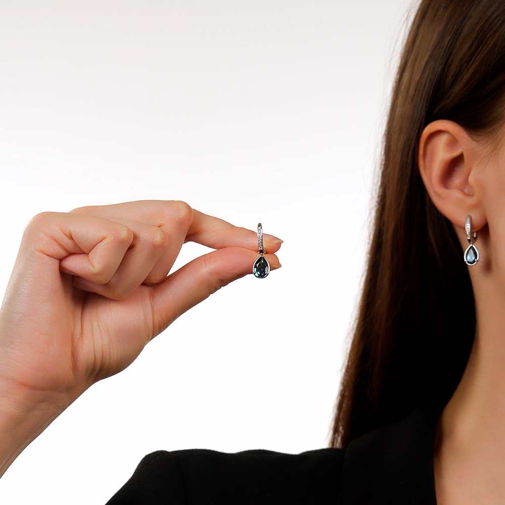 Удивлена, что на эти серёжки совсем нет отзывов. Мне они понравились ещё на сайте, а, примерив, поняла, что без них не уйду. Миниатюрные, но заметные. Красиво сидят на ухе, подвеска закреплена подвижно, крепкий замок. Топаз благородного серо-синего цвета; если поднять волосы - просвечивается и смотрится светлее. У меня небольшие уши и скорее тонкая мочка, до замка есть место на среднюю, на толстую мочку - не уверена, нужно мерить.