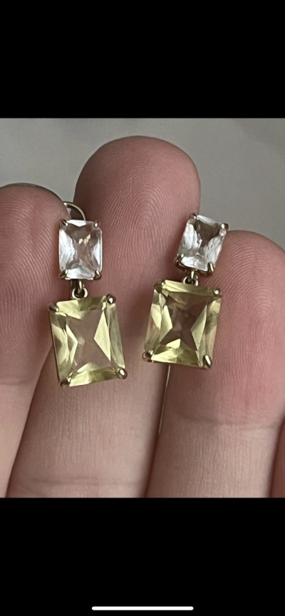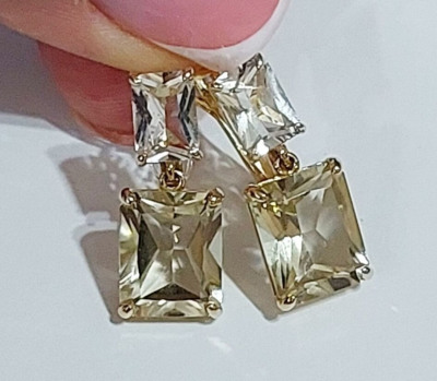 Золотые серьги с кварцами лимонными и бесцветными природными
