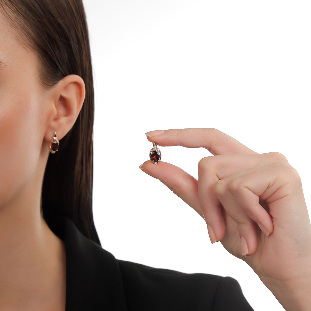 В редких случаях характеристики украшения или упаковка могут иметь отличия от представленных на фото или в описании.Серьги с 2 гранатами природными, 2.76 карат;