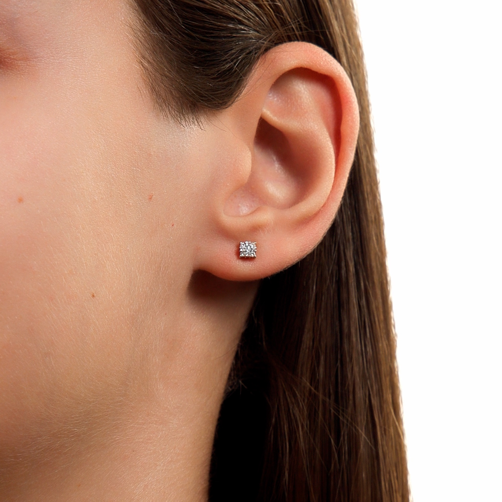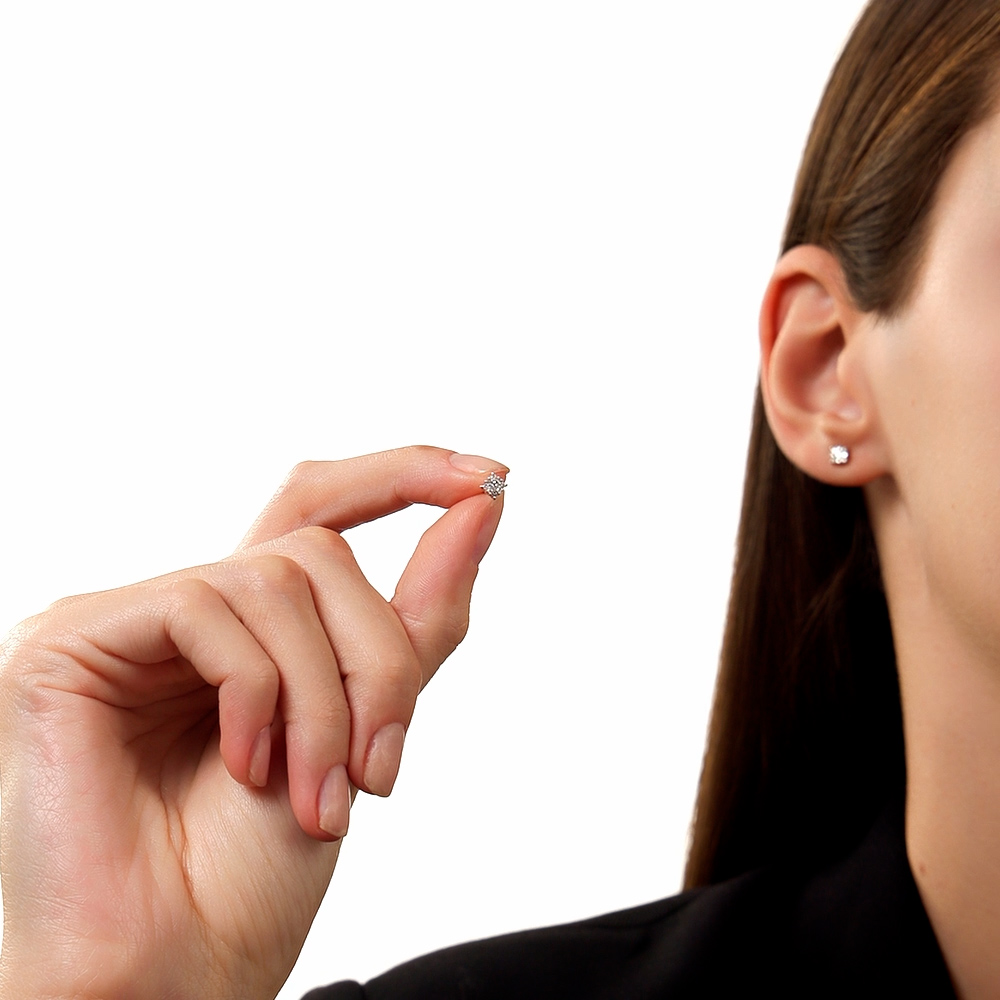 Серьги с 2 бриллиантами природными, 0.03 карат, огранка круг 57 граней, цвет 3, чистота 6, тип огранки А;
