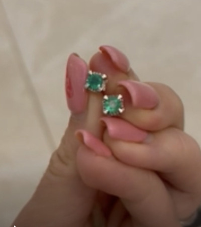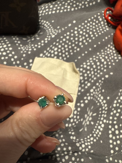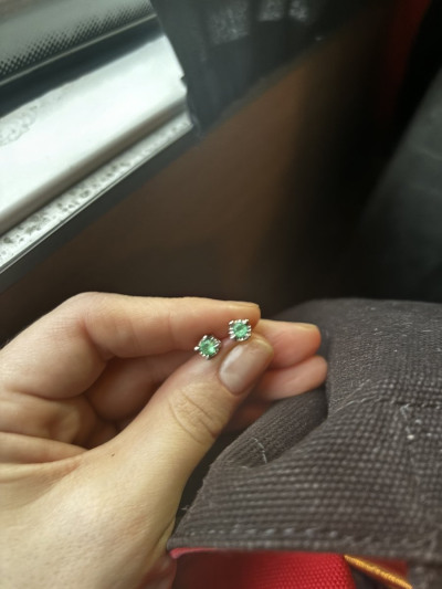 На этих пусетиках хороший, такой заметный изумруд! Очень нравятся!