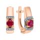 Серьги с 2 рубинами синтетическими, 1.2 карат, тип огранки В;