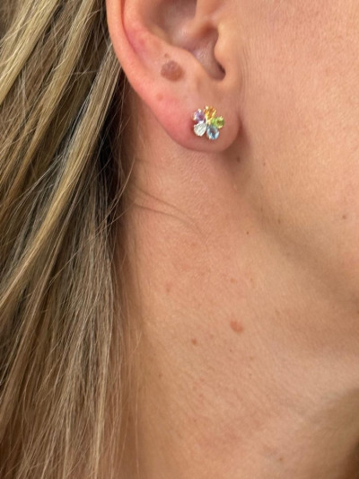 Золотые серьги с природными цитринами, топазами, аметистами, хризолитами и бриллиантами