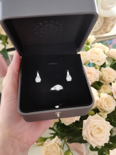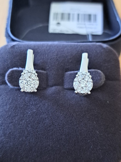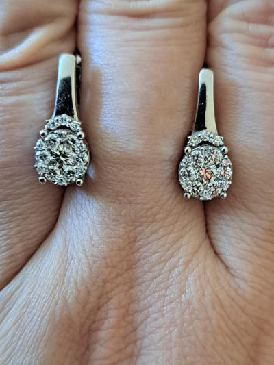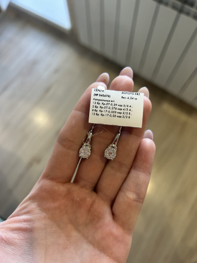 Милые, нежные серьги с бриллиантами из белого золота. Центральный бриллиан достаттчно крупный. Выглядят серьги достаточно скромно но блеск камней просто нереальный. К покупке рекомендую.