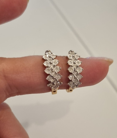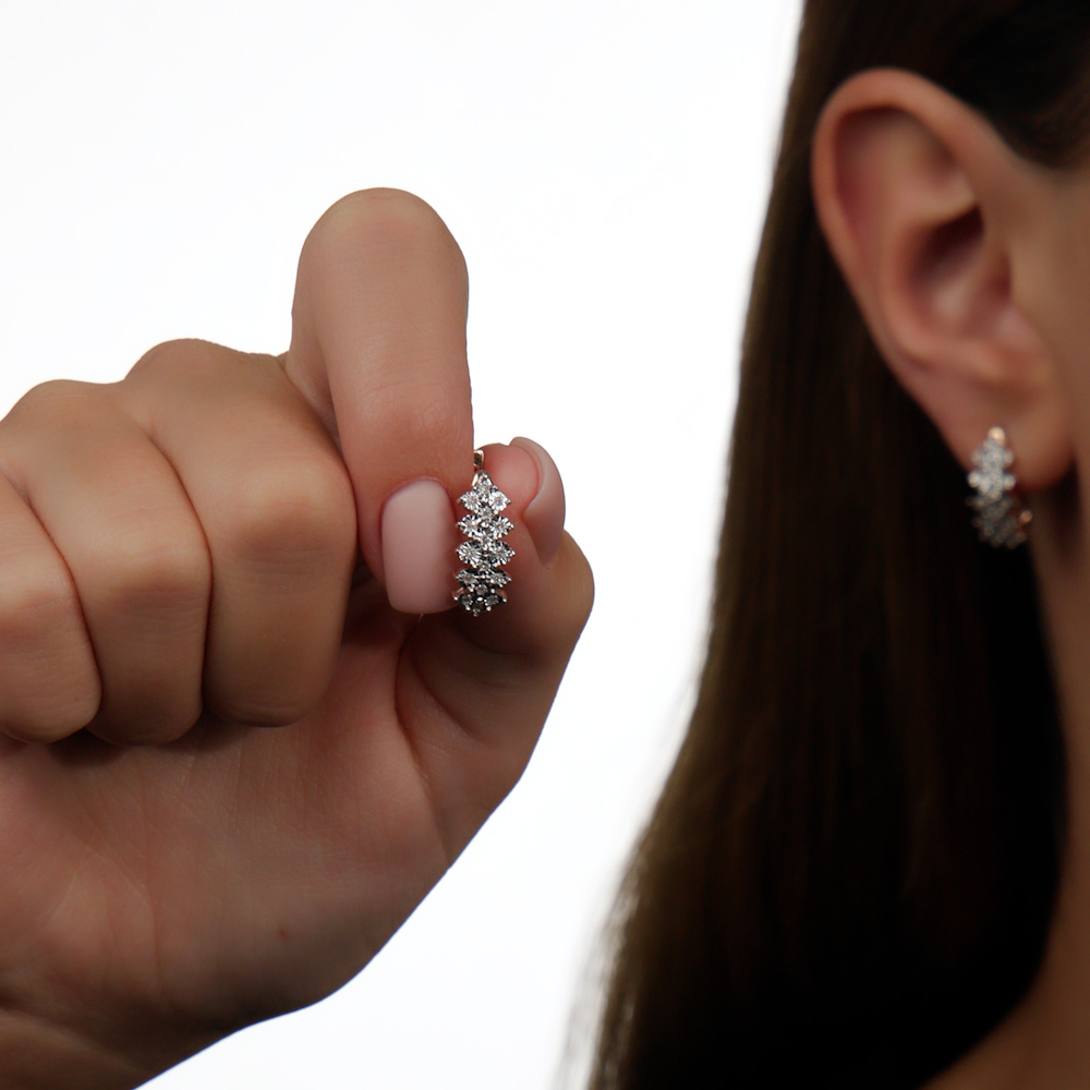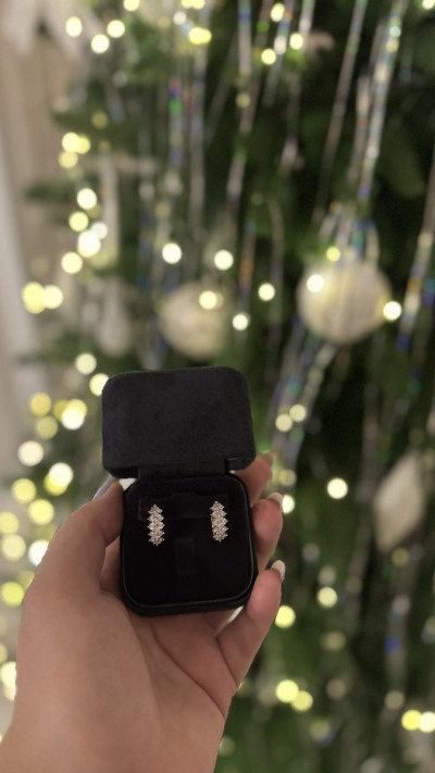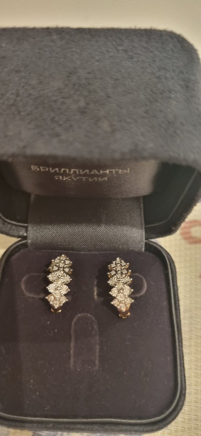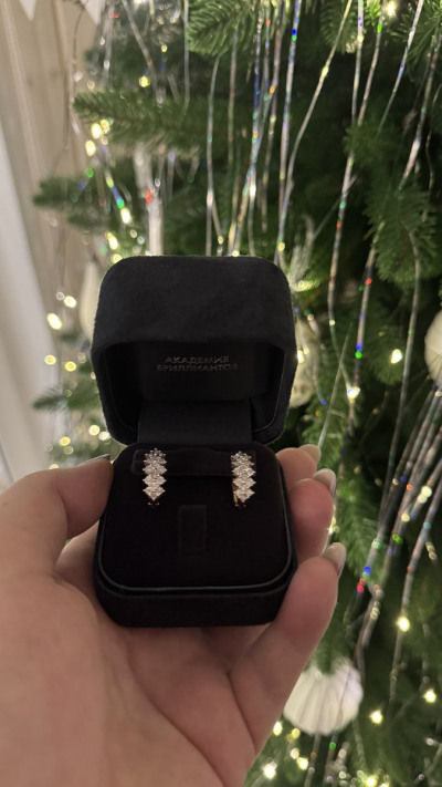 Серьги классической формы с бриллиантами, очень добротные. Бриллианты блестят, радуют глаз) в магазине выдали паспорт на изделие и сказали, что действует пожизненная гарантия.