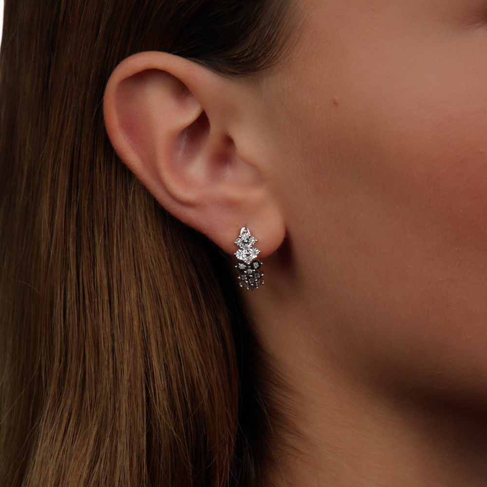 Серьги с 32 бриллиантами природными, 0.15 карат, огранка круг 17 граней, цвет 2, чистота 2, тип огранки А;