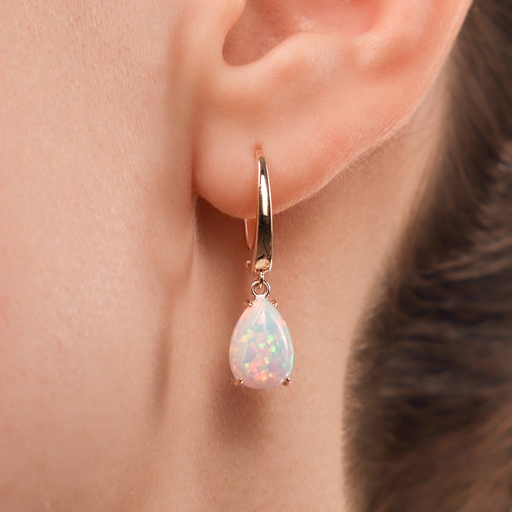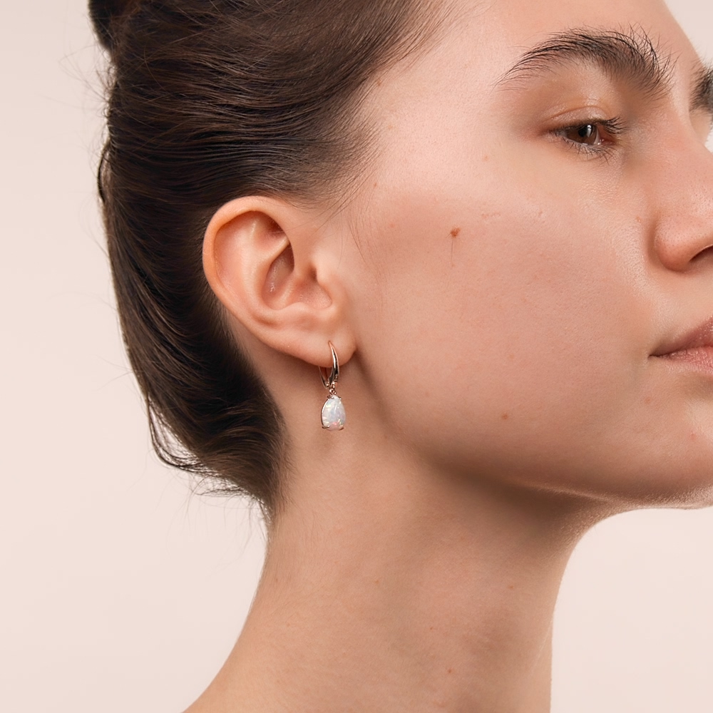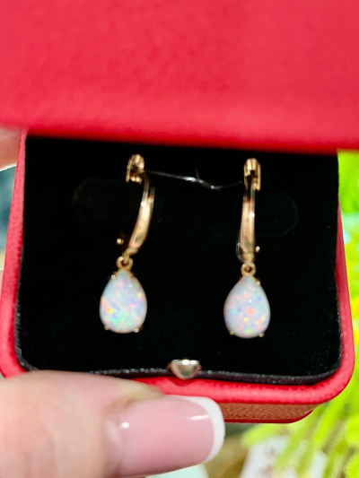 В редких случаях характеристики украшения или упаковка могут иметь отличия от представленных на фото или в описании.Серьги с 2 опалами белыми синтетическими, 2.33 карат;