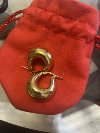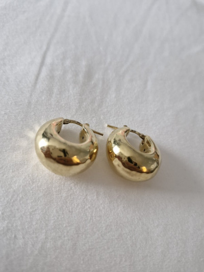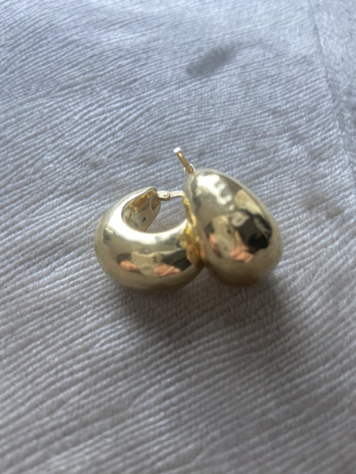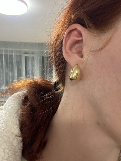 Крупные заметные серьги, но в тоже время очень лаконичные. Дутое серебро, поэтому невесомые. Поверхность не гладкая, что делает их ещё интереснее.