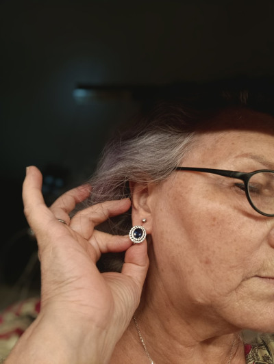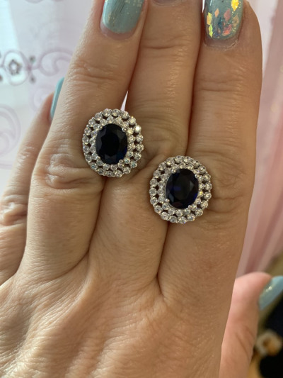 Серьги довольно крупные, тяжеленькие. Смотрятся очень достойно. Когда-то видела похожие серьги с бриллиантами и сапфиром они были настолько красивы, что запомнились, но даже не мечтала что я могу быть обладателем такой красоты. И вот спустя годы, благодаря Санлайту у меня они есть, не сапфир с бриллиантами, но выглядят очень и очень!!!