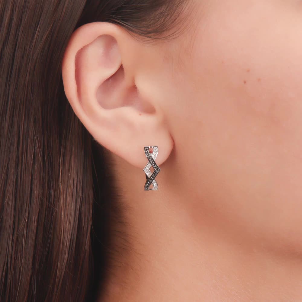 Золотые серьги с бриллиантами черными природными