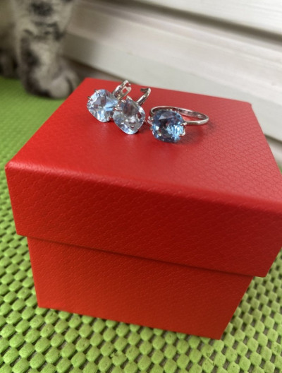 Очень красивые серьги с голубым топазом. На солнце красиво блестят, как льдинки. К покупке рекомендую.