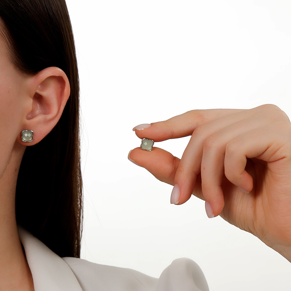 Серьги, вставка: алпанит зеленый;