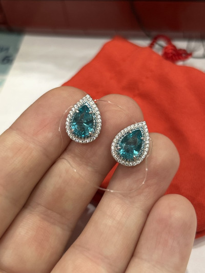 До голубого цвета камня далеко,он четко зелёный в жизни,как в акварели изумрудный зелёный. Но на фото больше кажется голубым.
