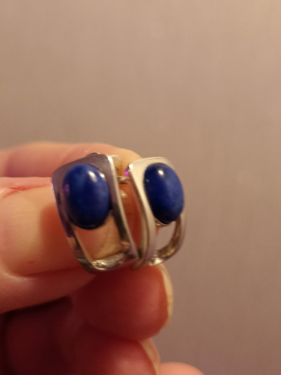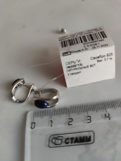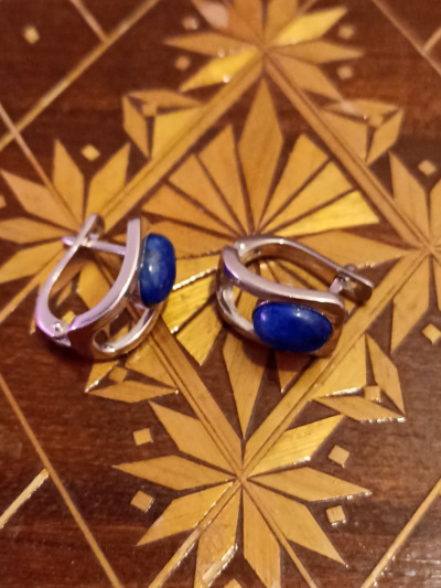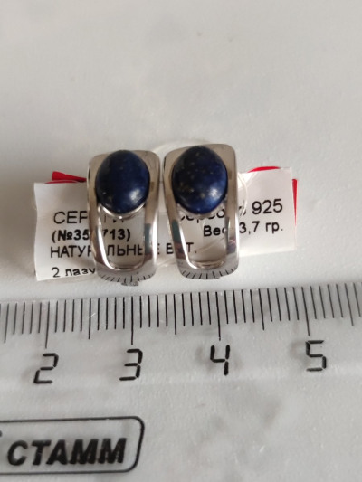 Серьги из серебра со вставкой из натурального лазурита, небольшие, удобные, сели хорошо, интересно что камень в серьгах сверху на мочке, серьги на каждый день.
