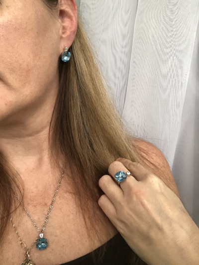 Очень красивые серьги. Камень не мелкий, смотрится в комплекте с подвеской и кольцом вообще супер! Застежка удобная.