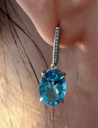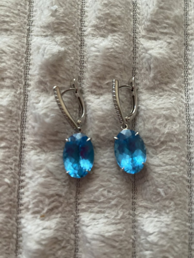 Долго мечтала их купить, хотя у меня уже были серьги с топазом. Но эти заворожили меня чудесным цветом камня! Цвет немного напоминает параиба. И вот моя мечта сбылась! ! Замочки крепкие, белое золото, бриллианты! Санлайт- спасибо огромное за такое очарование! ❤️🥰