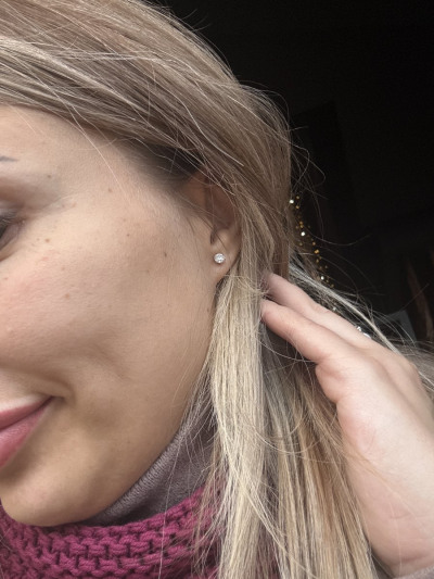 Очень блестят, все обращают внимание, не мелкие, камень достойно выглядит и ничего лишнего. Рекомендую к покупке, соотношение цена и качество. Сам гвоздик идеально сел не на тонкую мочку, застёжка крепкая. Спать не мешает