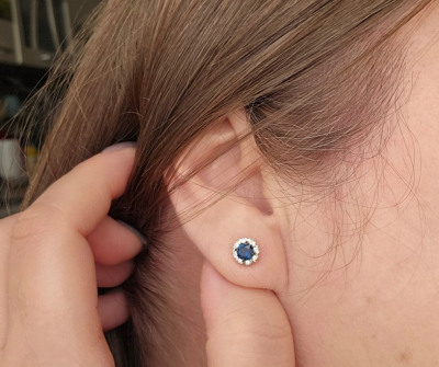 Очень красивые пусеты,сапфир потрясающий,на свету свечение камня видно,брилиантики горят