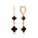 Золотые серьги с фианитами и ониксом