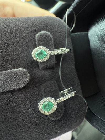 Золотые серьги с бриллиантами природными и изумрудами природными