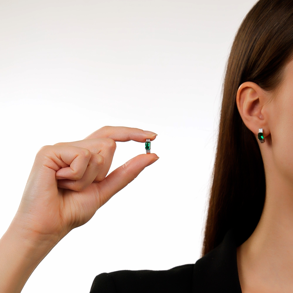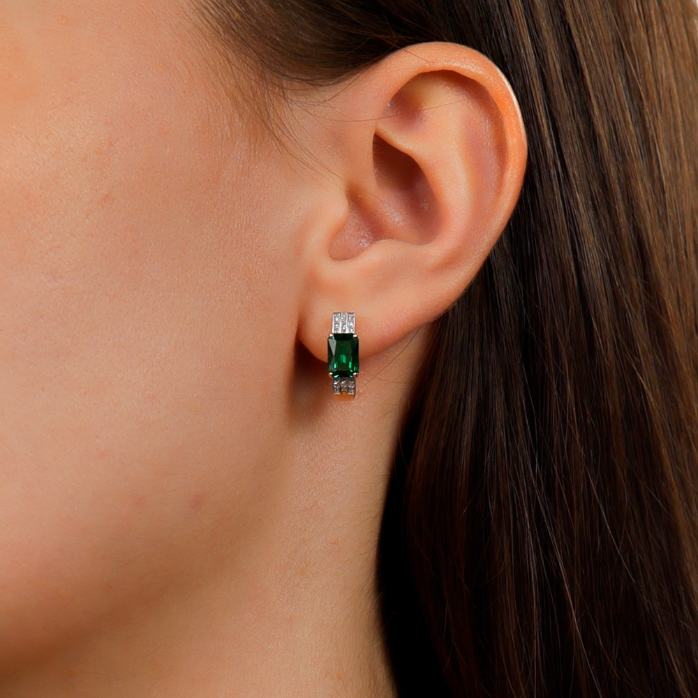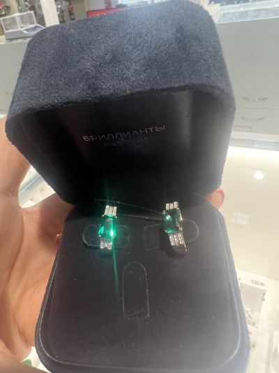 Золотые серьги с бриллиантами природными и изумрудами выращенными