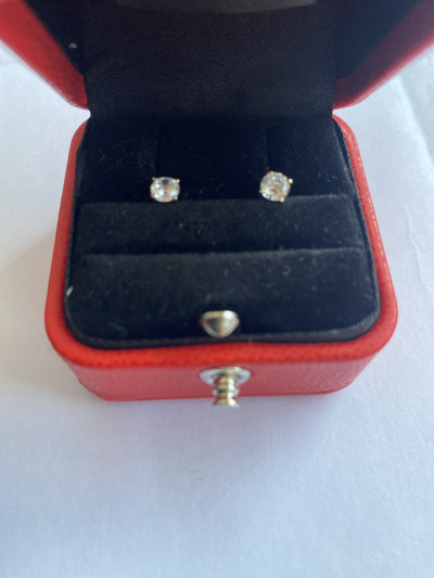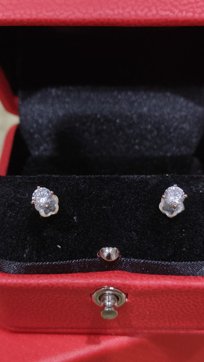 Милые сережки. Золото 585 пробы, камни прозрачные фианиты, диаметр 4 мм. Застежки силикон. Купила на подарок дочери. Красивая упаковка.
