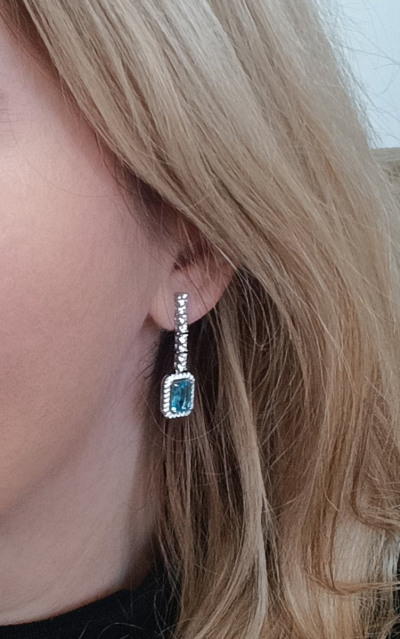 Симпатичные, нежные серьги, красивый насыщенный цвет камня. Похож на топаз-скай, но поярче оттенок.