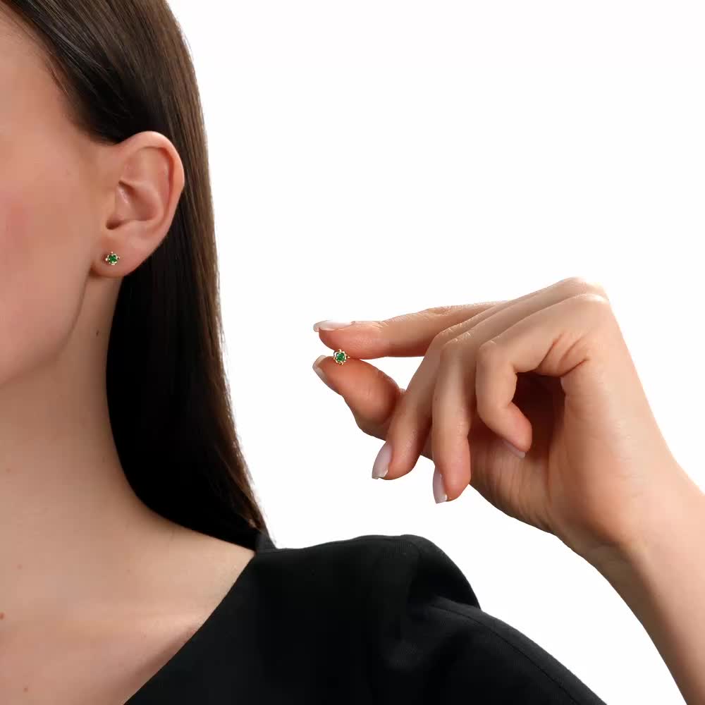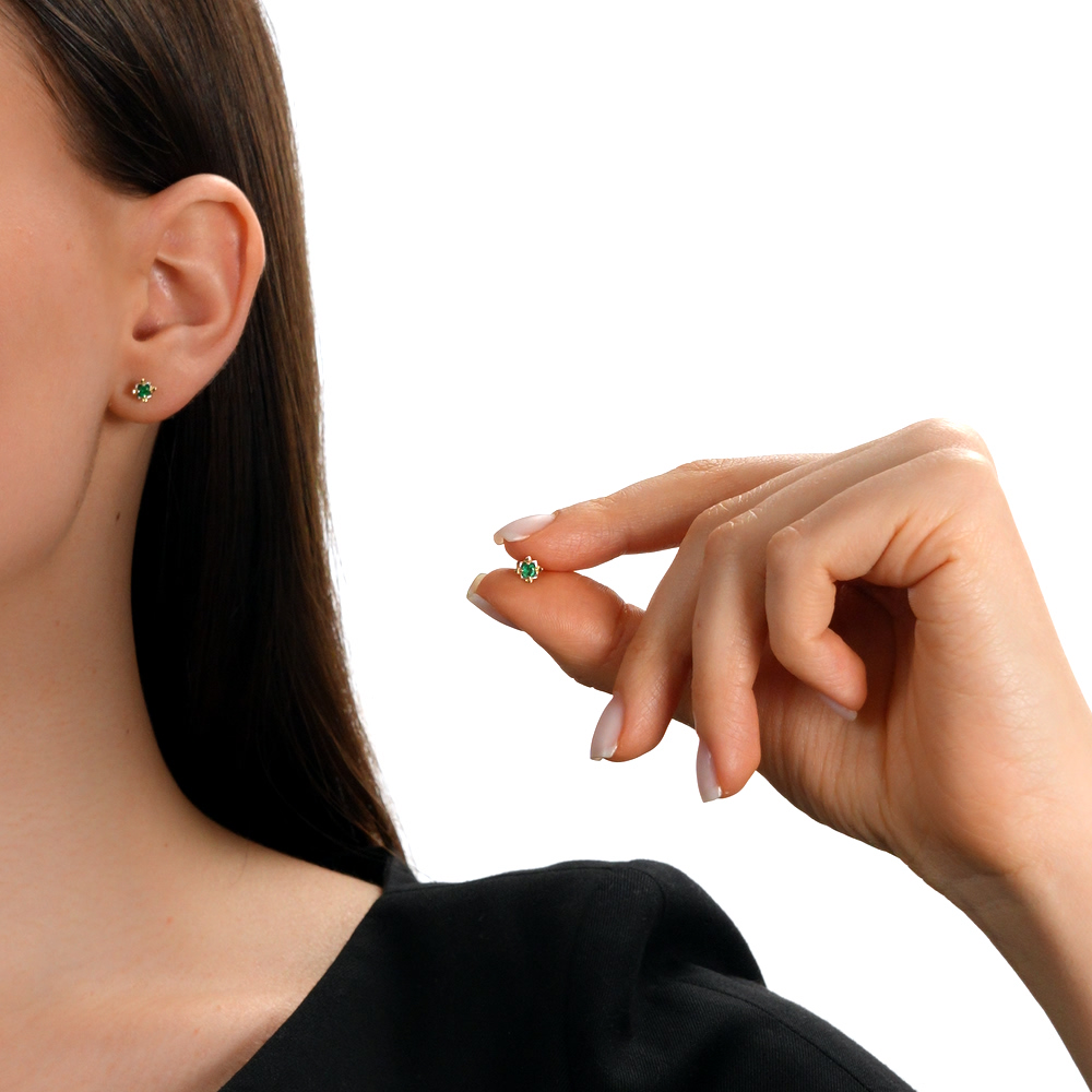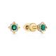 Серьги с 2 изумрудами природными, 0.1 карат, цвет 3, чистота 3, тип огранки В;