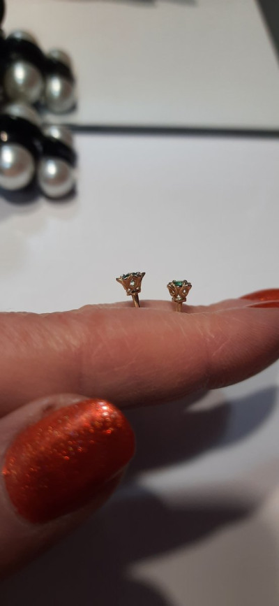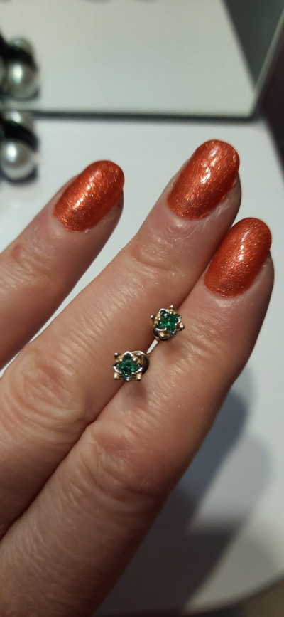 Очень хорошие пусеты с изумрудами, застёжка удобная не растёгивается и не мешает при носке