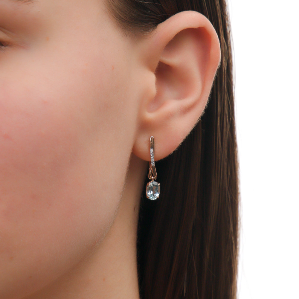 Золотые серьги с бриллиантами природными и топазами природными