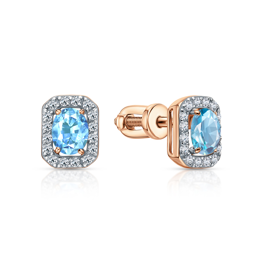 Золотые серьги с бриллиантами природными и топазами природными