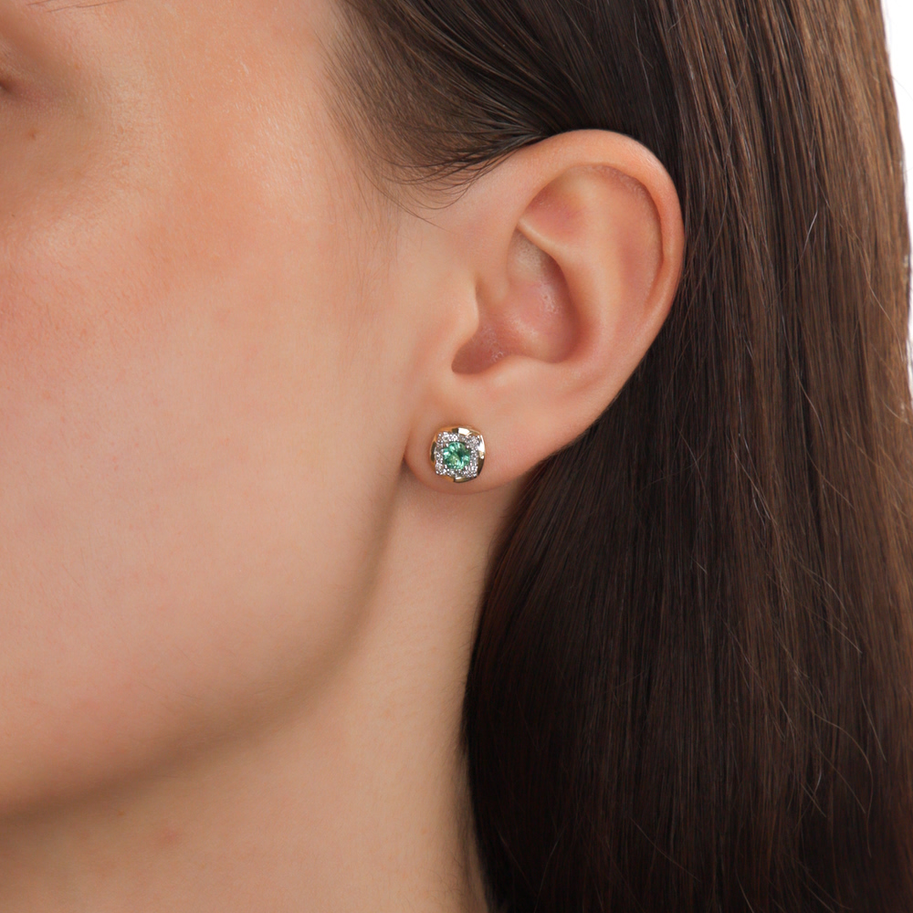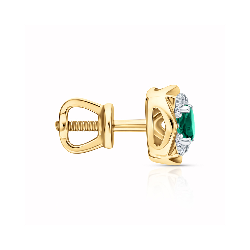 Золотые серьги с бриллиантами природными и изумрудами природными