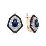 Золотые серьги с бриллиантами природными и сапфирами природными