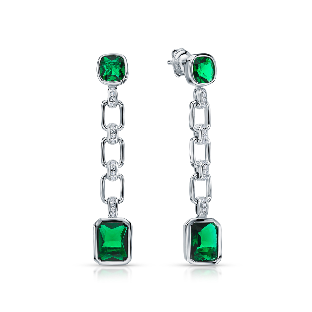 Серебряные серьги с фианитами и алпанитом