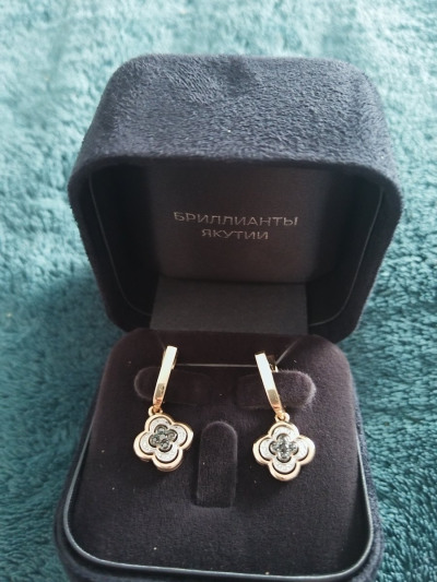Серьги с 2 бриллиантами природными, 0.04 карат, огранка круг 57 граней, цвет 7, чистота 6, тип огранки А;