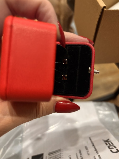 В редких случаях характеристики украшения или упаковка могут иметь отличия от представленных на фото или в описании.Серьги с 2 гранатами природными, 0.61 карат;
