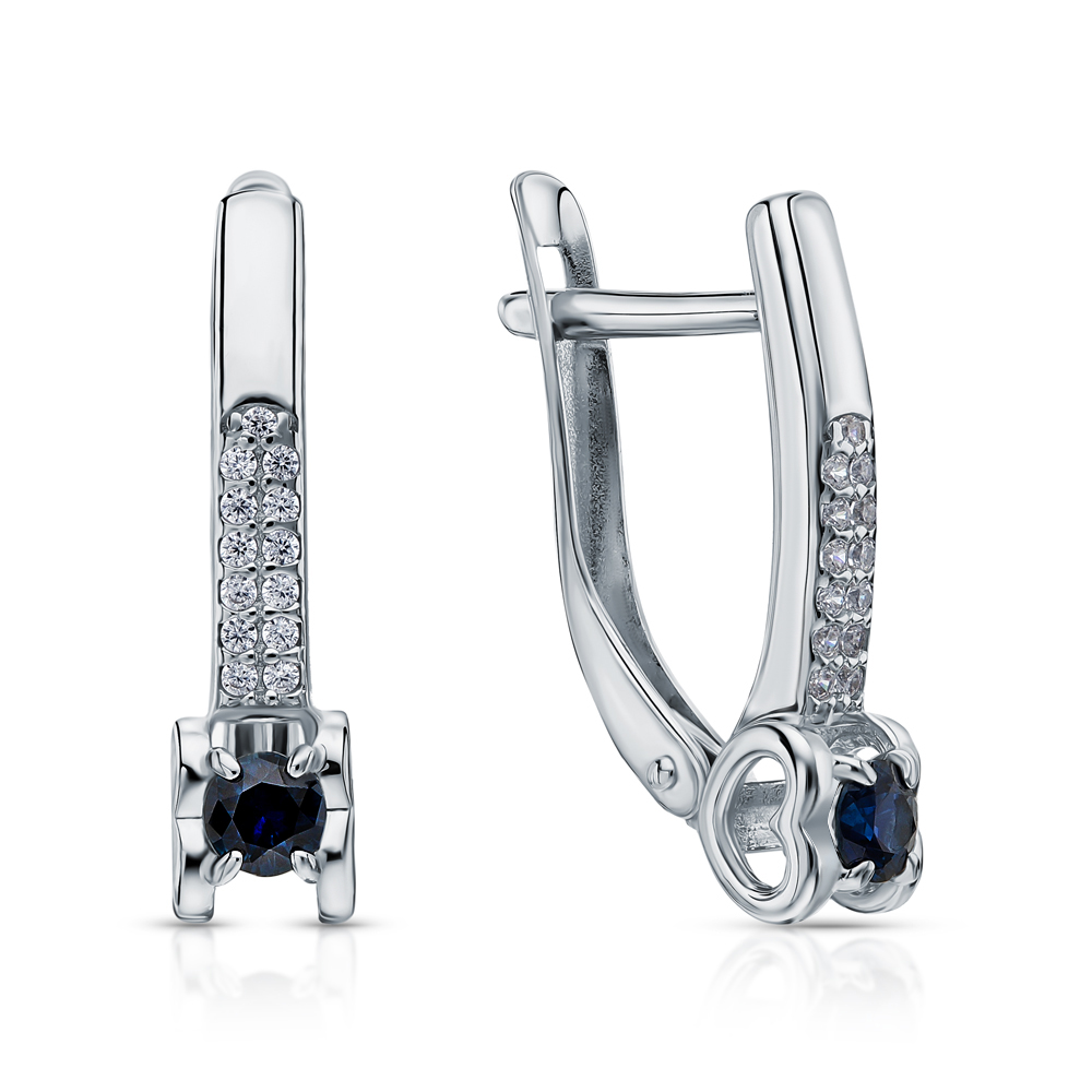 Серебряные серьги с фианитами и сапфирами природными