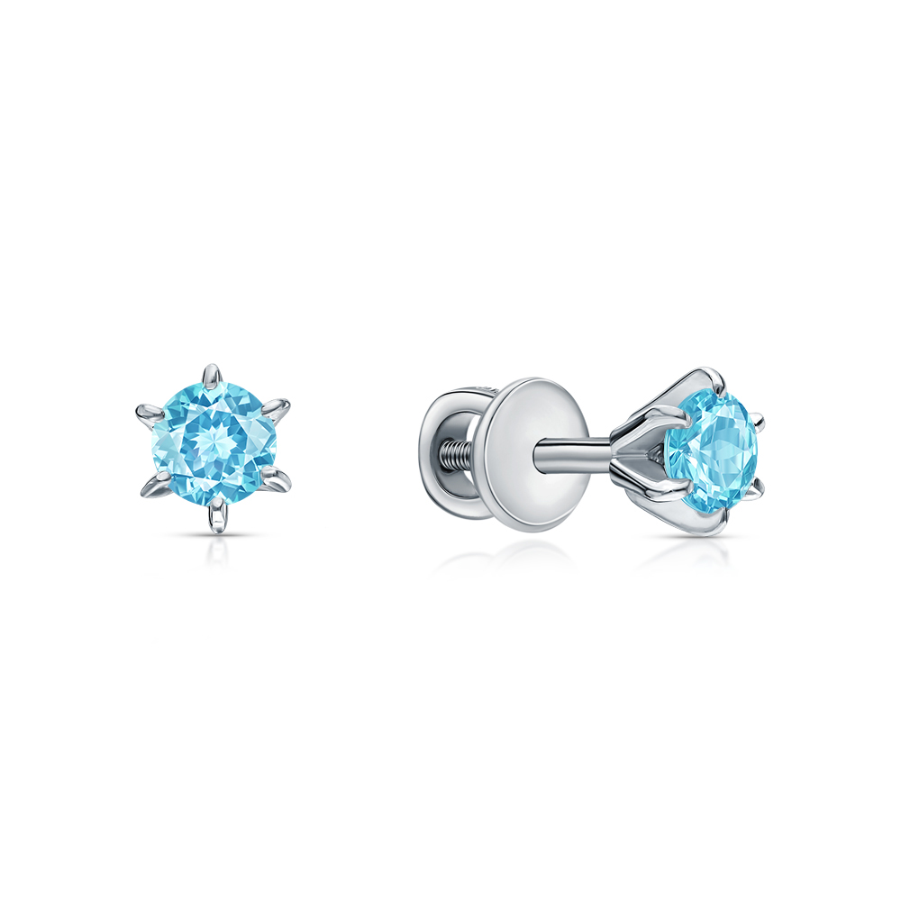 Серьги с 2 топазами скай природными, 0.6 карат;