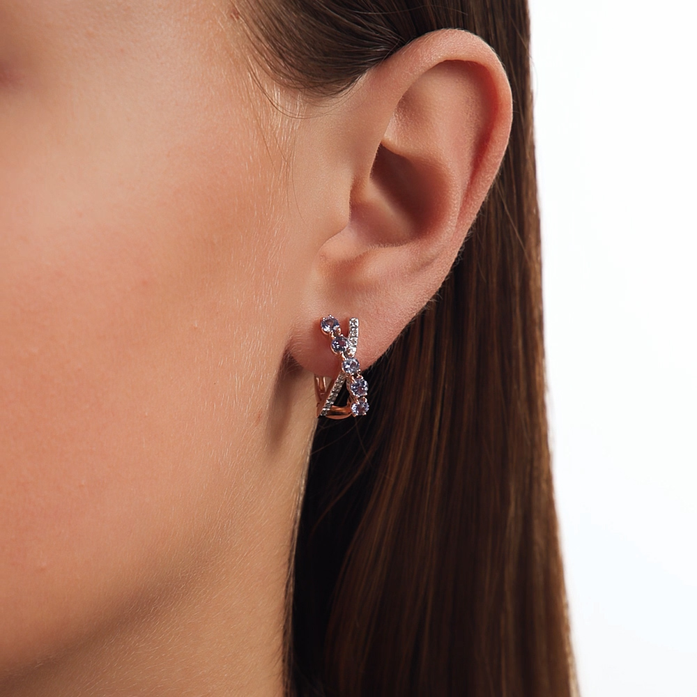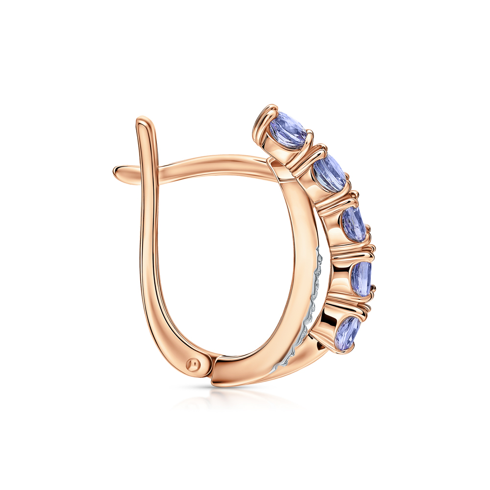 Золотые серьги с бриллиантами природными и танзанитами природными