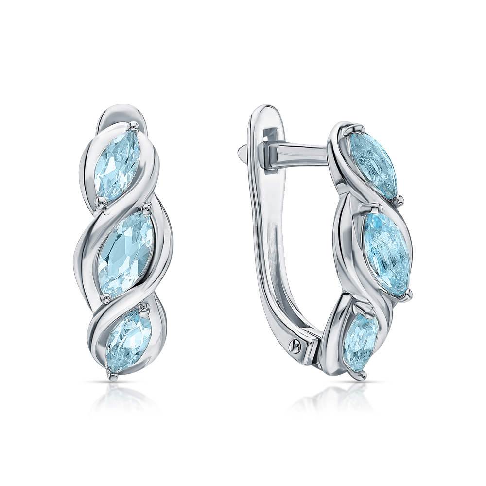 Серьги с 2 топазами скай природными, 0.52 карат;