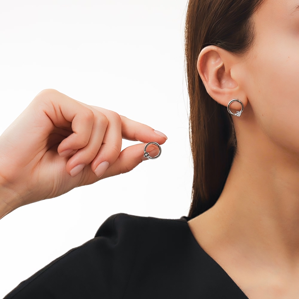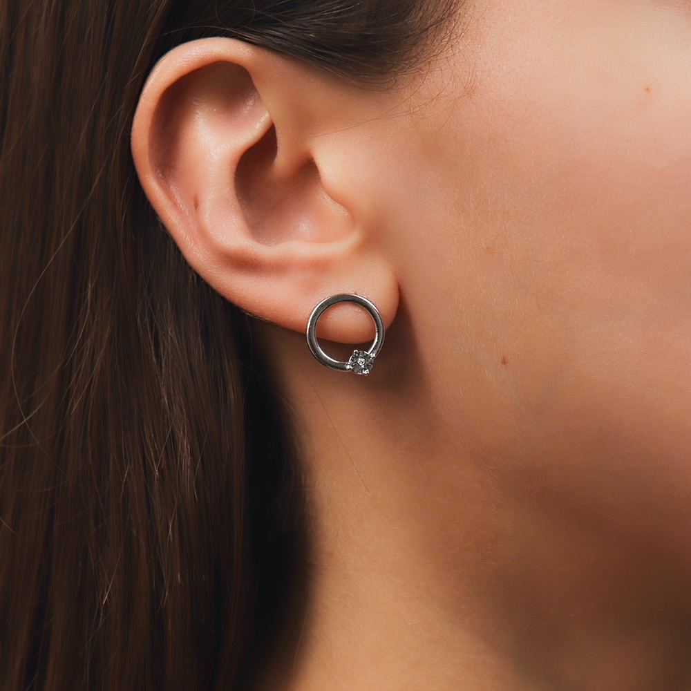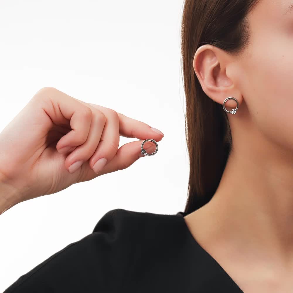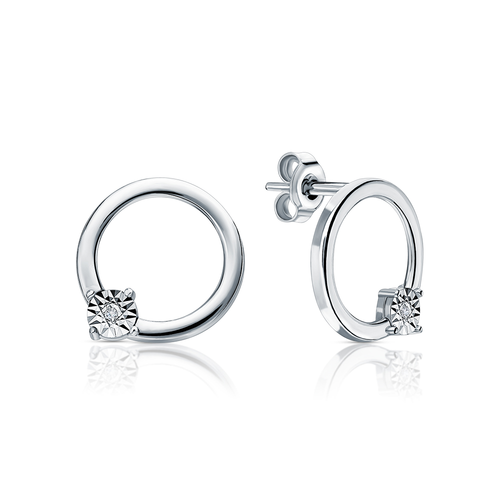 Серьги с 2 бриллиантами природными, 0.006 карат, огранка круг 17 граней, цвет 3, чистота 3, тип огранки Б;