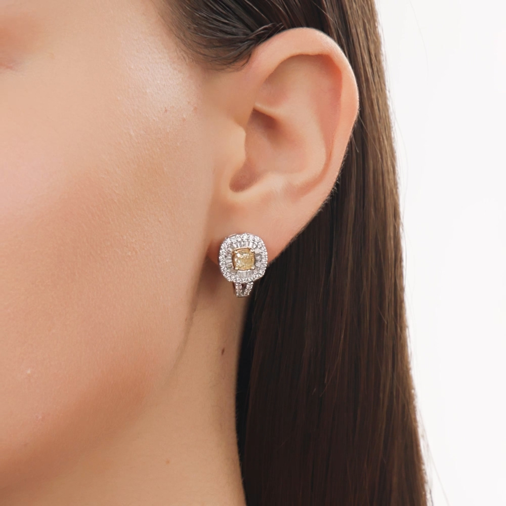Серьги с 2 бриллиантами природными, 1.24 карат, цвет 8-4, чистота 6, тип огранки А;