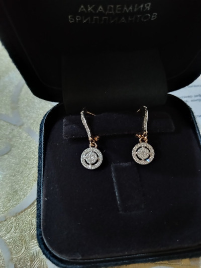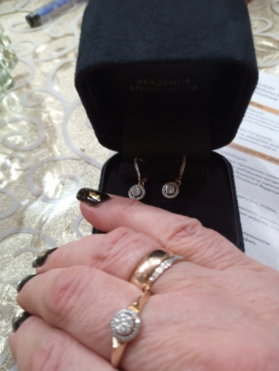 Серьги подбирали к кольцу. Очень красивый комплект получился. Цена очень приятная с учетом всех скидок. Рекомендую. Благодарю сотрудников за помощь, сделали заказ и через 2 дня привезли из другого города.
