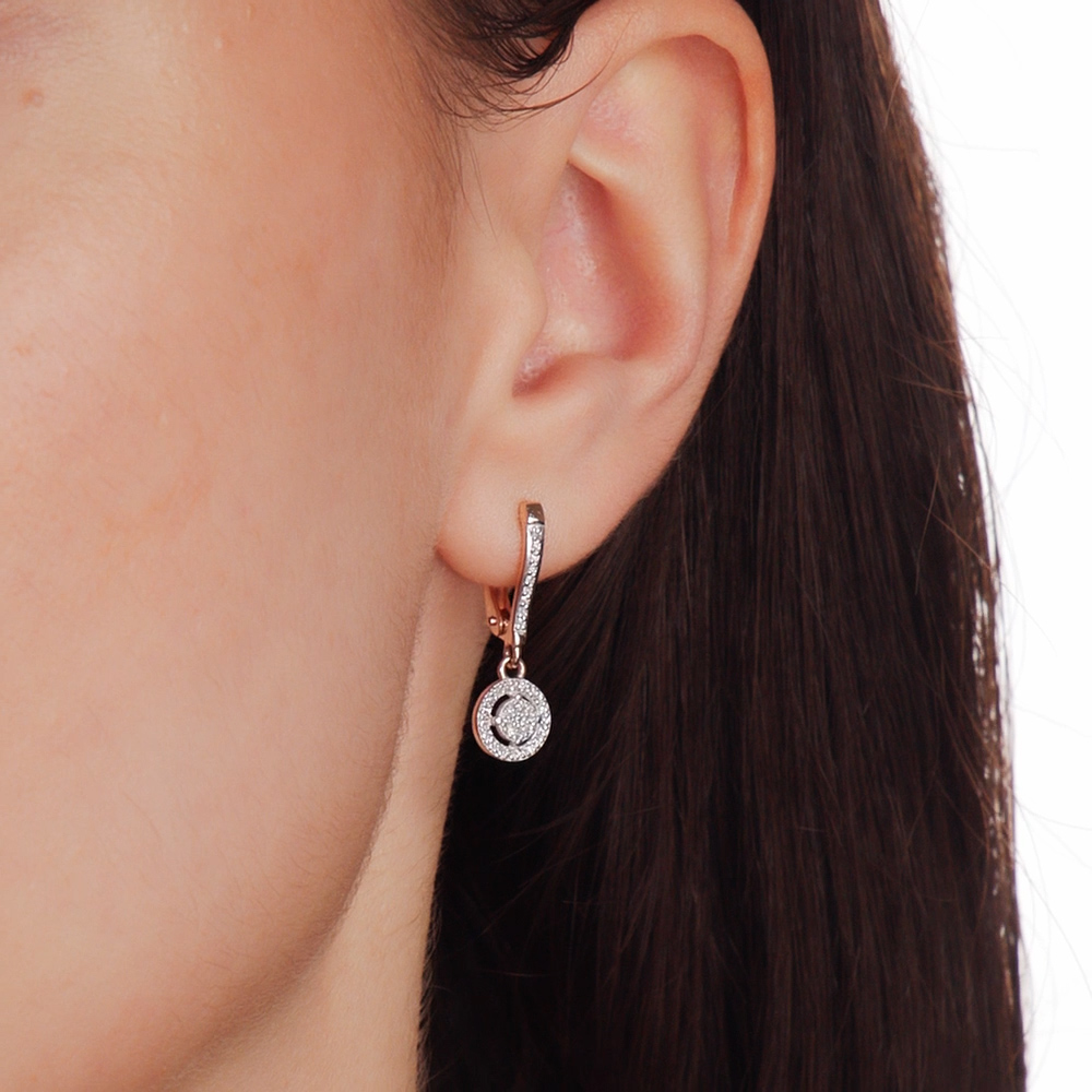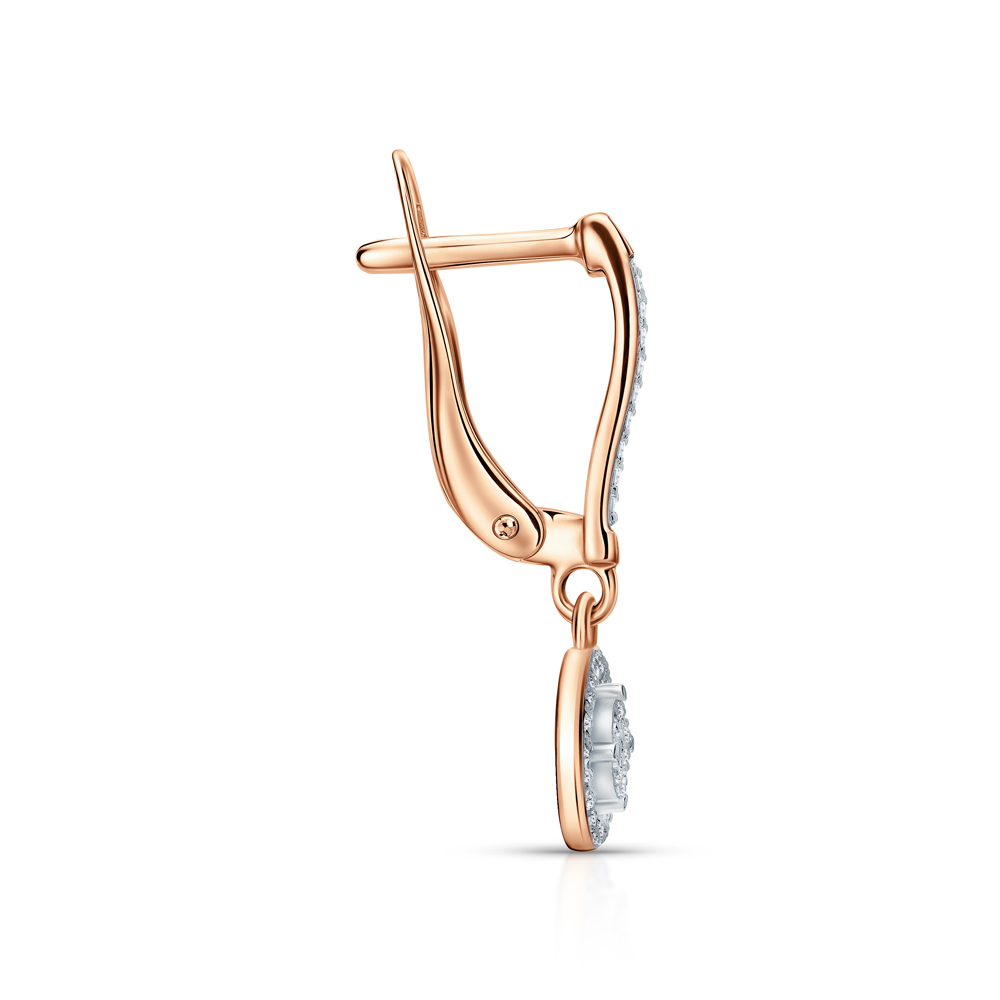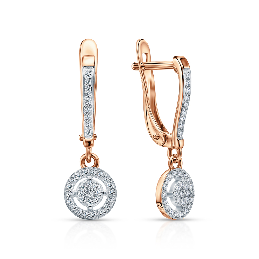 Серьги с 72 бриллиантами природными, 0.17 карат, огранка круг 17 граней, цвет 2, чистота 2, тип огранки А;