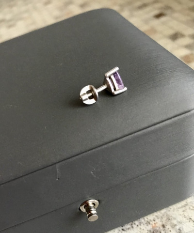 Серьги-гвоздики с аметистом, стильные и лаконичные
