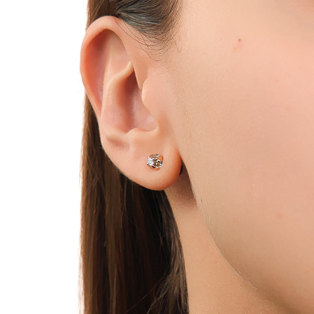 Серьги с 2 бриллиантами природными, 0.11 карат, огранка круг 57 граней, цвет 3, чистота 6, тип огранки А;