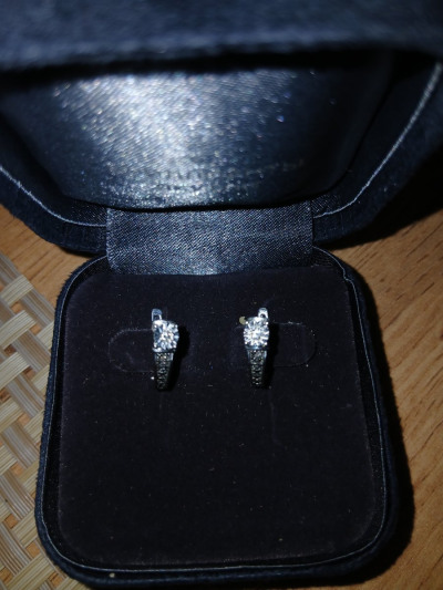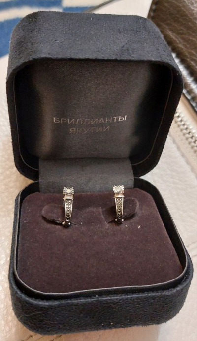 Серьги с 2 бриллиантами природными, 0.04 карат, огранка круг 57 граней, цвет 4, чистота 5, тип огранки А;